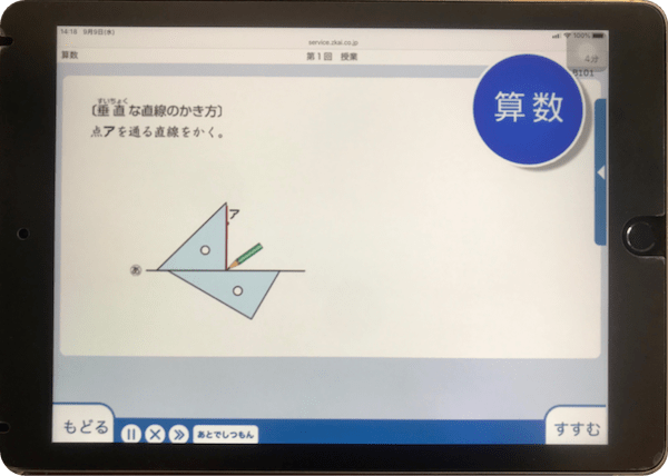 - 算数の図形問題などは紙教材よりタブレットのアニメーション解説の方が分かりやすい[/st-kaiwa4]